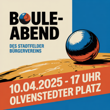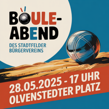 Die im vergangenen Jahr gestarteten Boule-Abende für Mitglieder des Stadtfelder Bürgervereins auf dem Olvenstedter Platz wurden sehr positiv aufgenommen und haben allen Beteiligten viel Freude bereitet. Unser nächster Boule-Abend findet … Weiterlesen